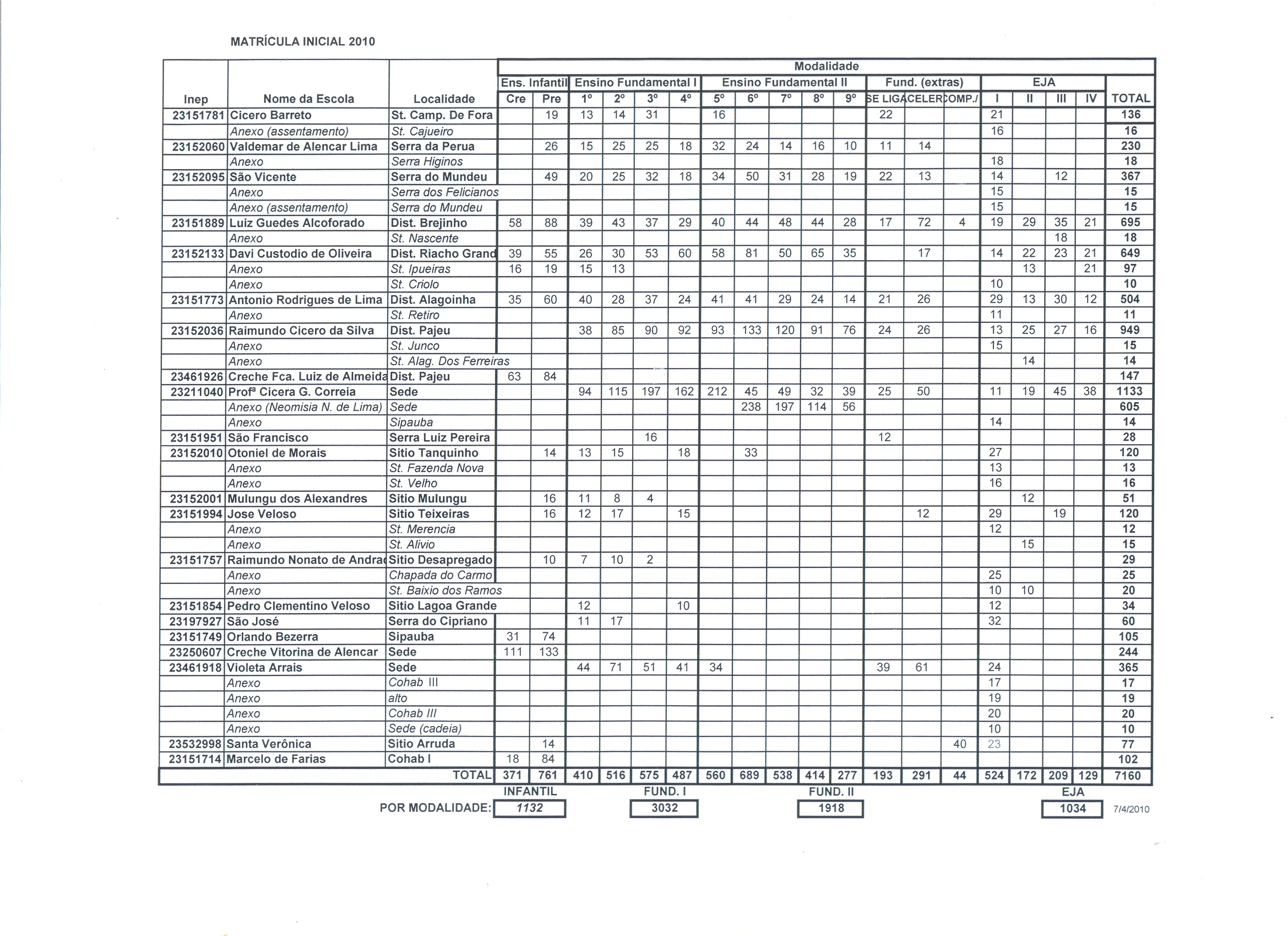 Matrícula 2010.